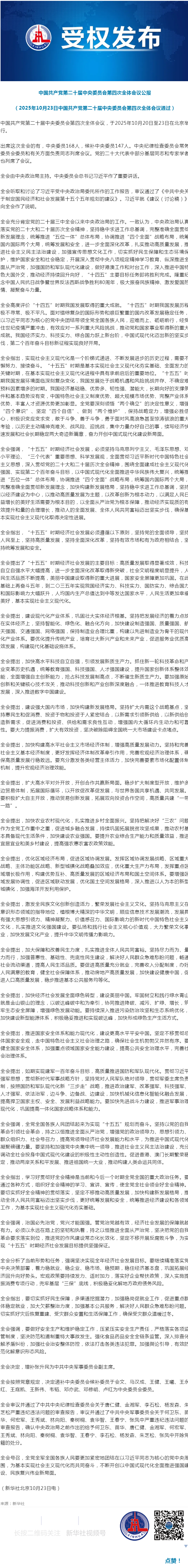 中国共产党第二十届中央委员会第四次全体会议公报
